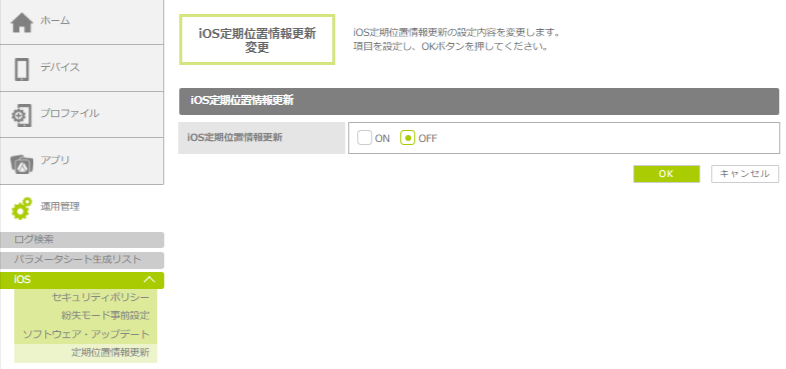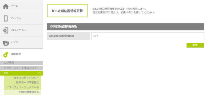 1.「運用管理」をクリックし、「iOS」-「定期位置情報更新」の順にクリックします。