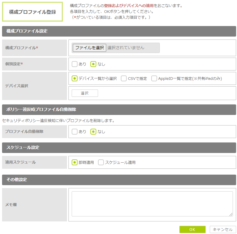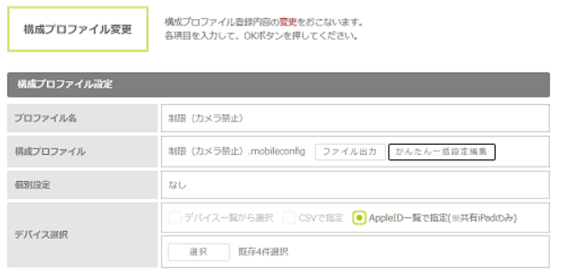 登録内容を確認し、「OK」ボタンをクリックすると、構成プロファイル変更は完了です。