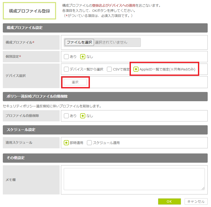 管理対象AppleIDに対して登録した構成プロファイルの注意事項