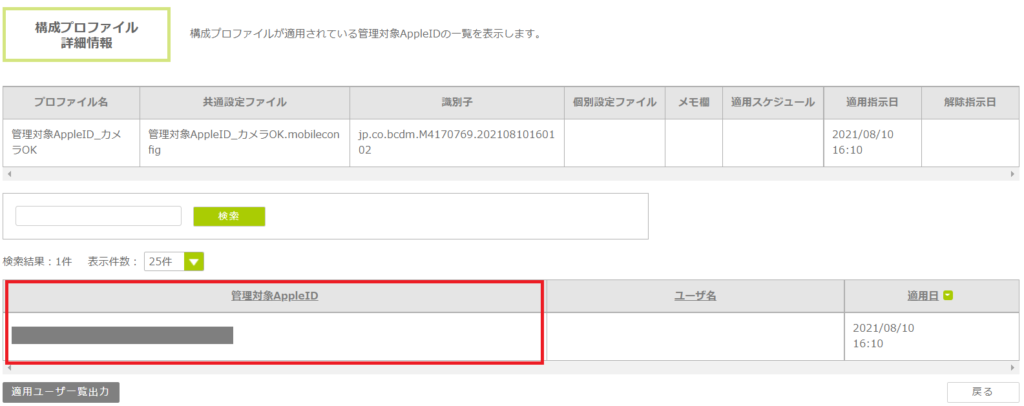 管理対象AppleIDに対して登録した構成プロファイルを確認する