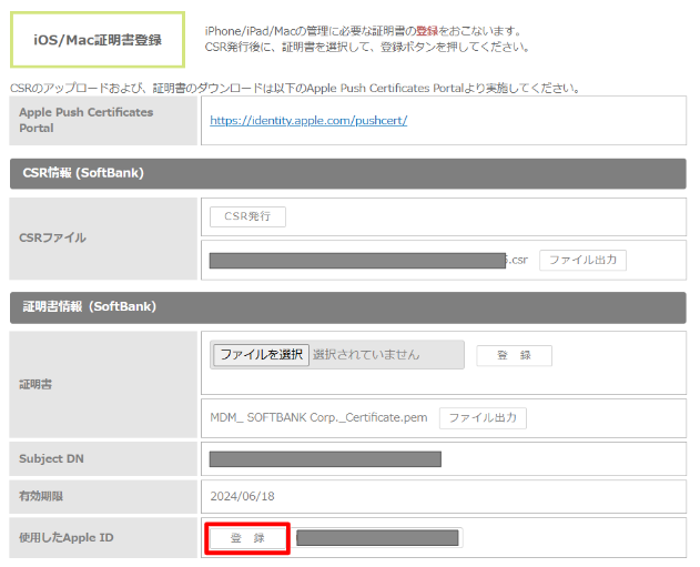 MDM証明書を年次更新する際に、作成時に使用したApple IDが必要になります。