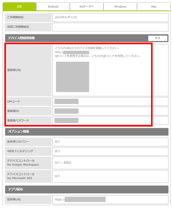 3.「登録用URL」、「DMコード」、「登録用ID」、「登録用パスワード」を確認します。