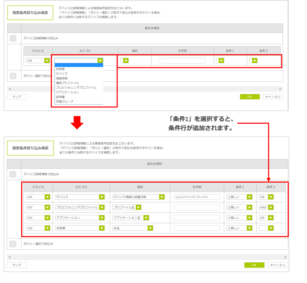 デバイス詳細情報で絞り込む場合