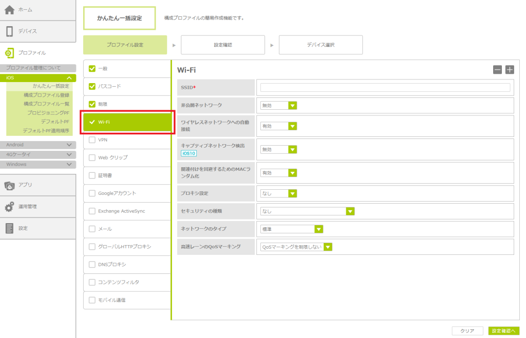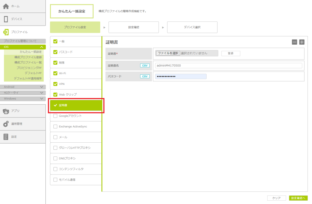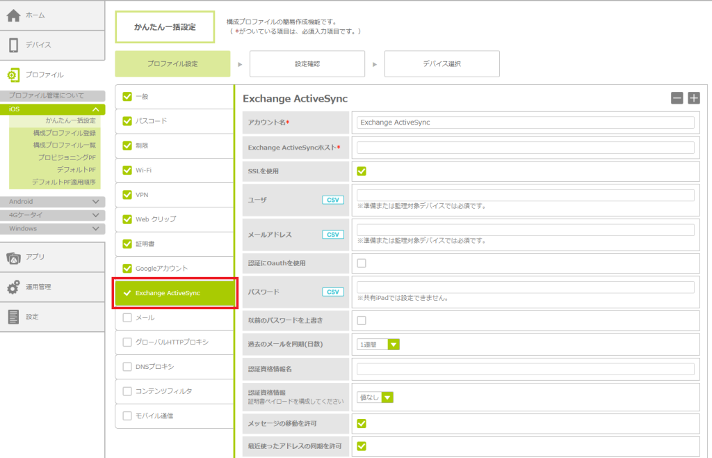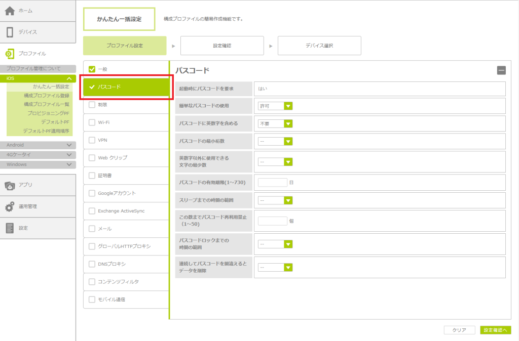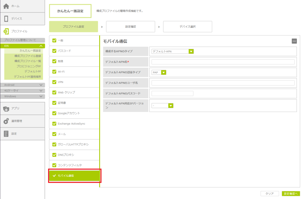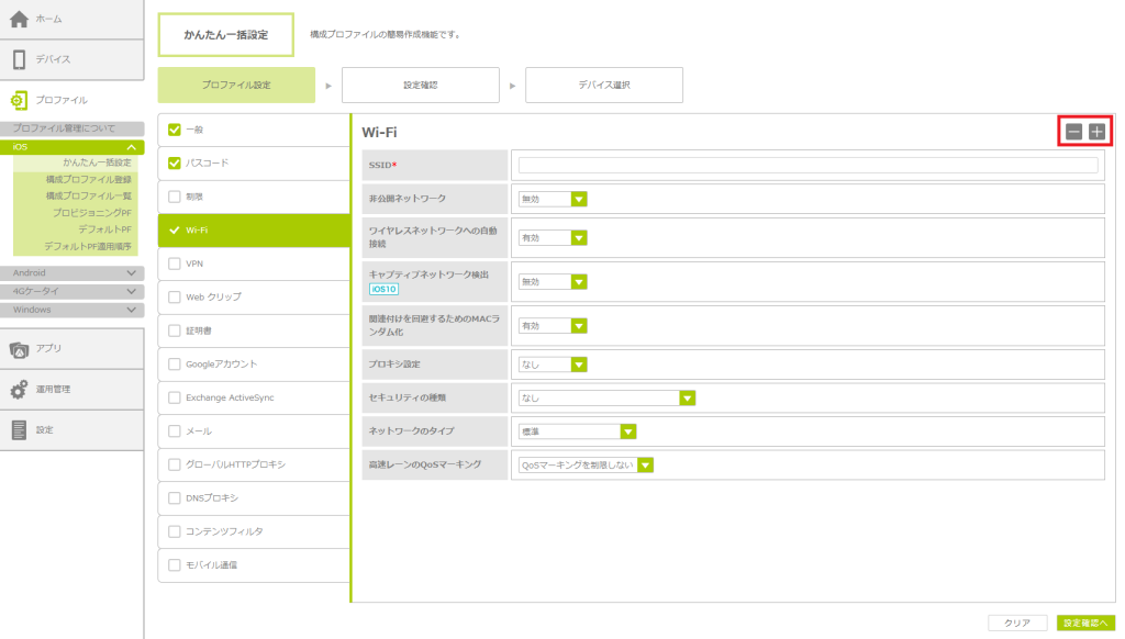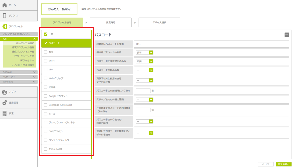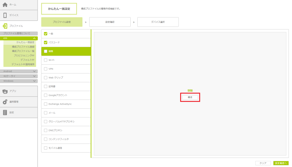 「かんたん一括設定」で構成プロファイルを作成する