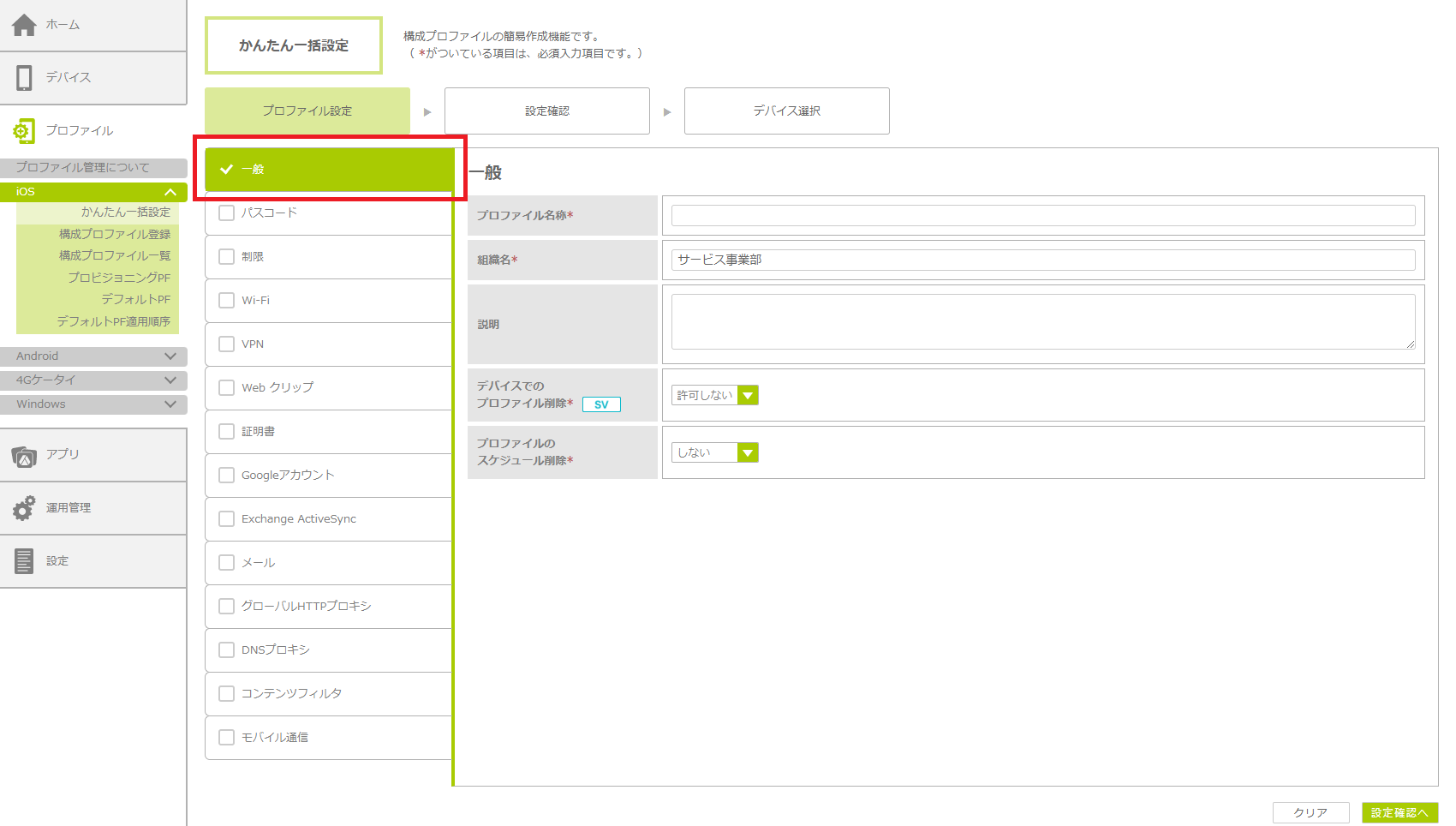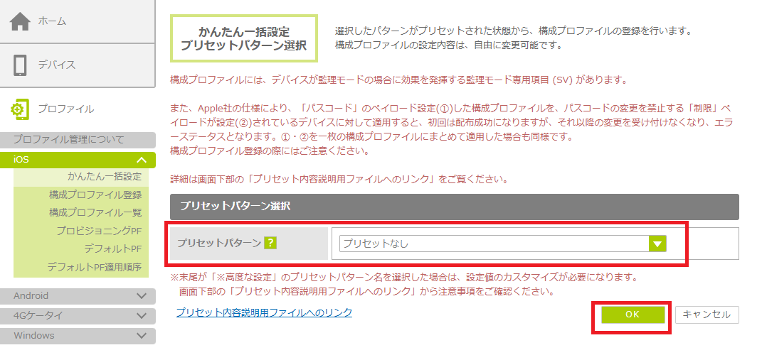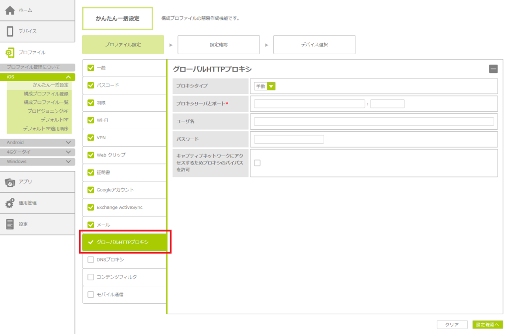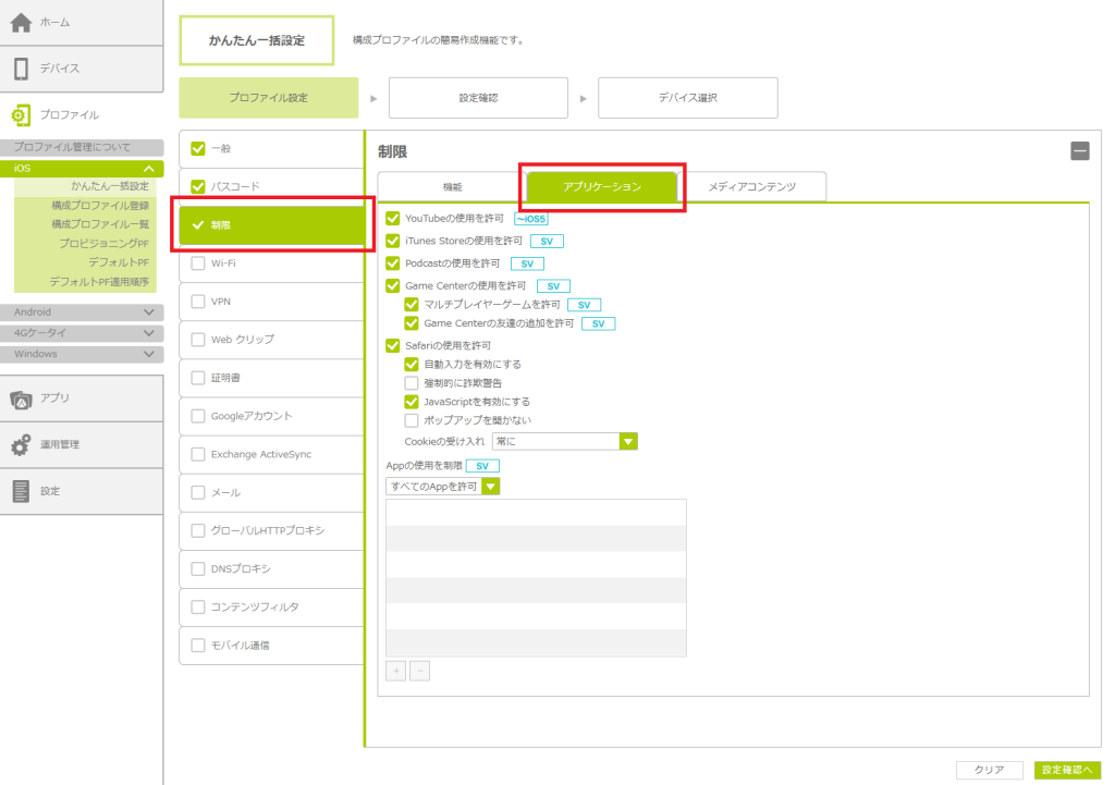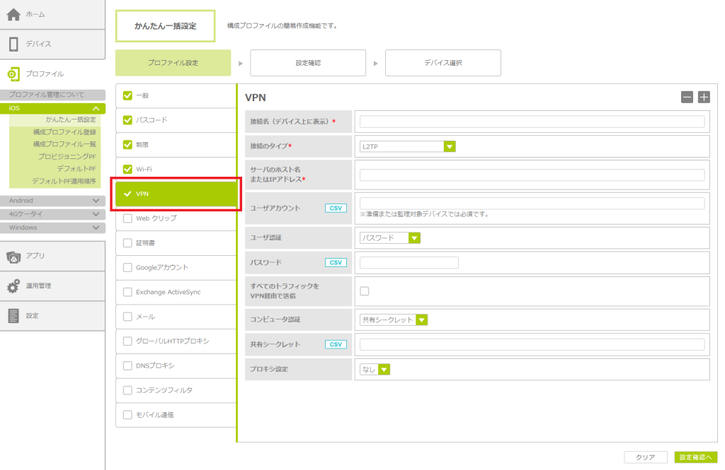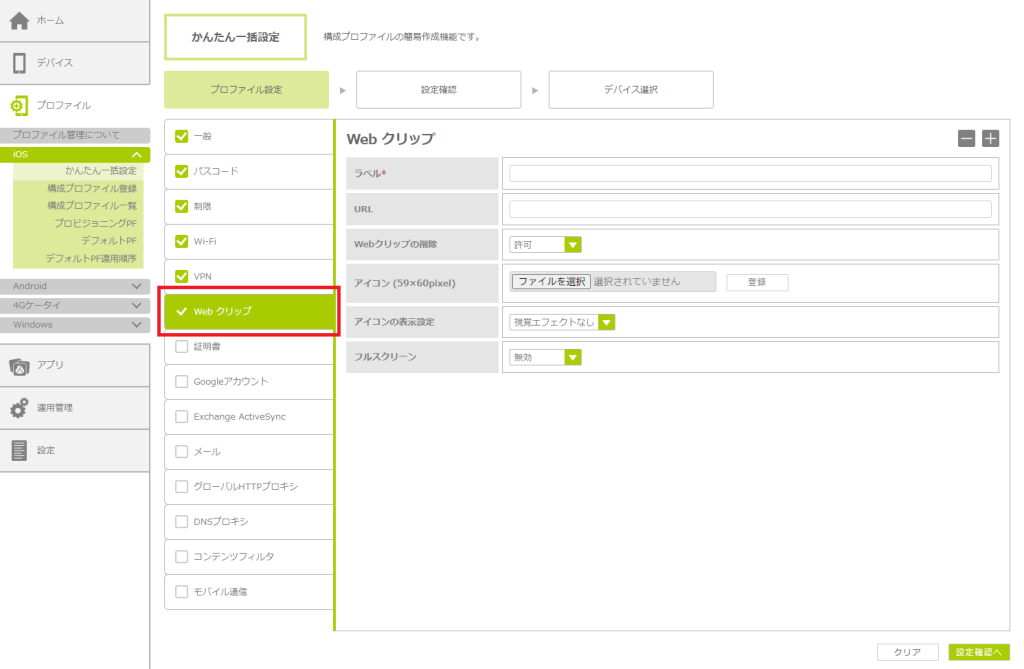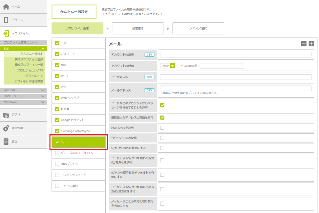 「かんたん一括設定」で構成プロファイルを作成する