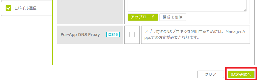 | Per-App DNS Proxy | Per-App DNS Proxyを利用する場合にチェックを入れます。