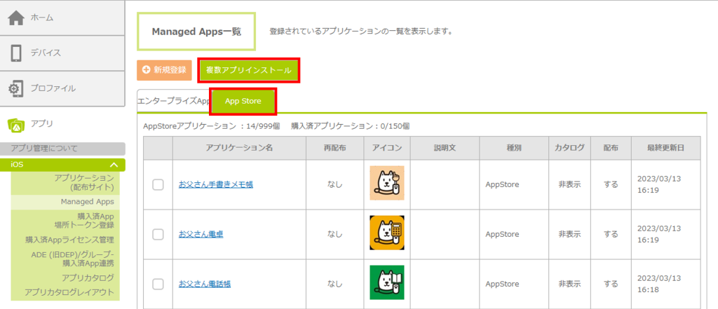 購入済Appを登録・配布する手順を説明します。