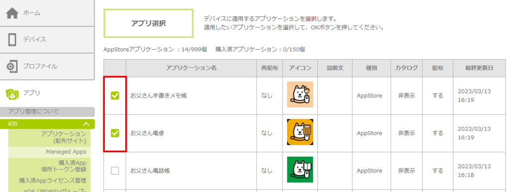 | 一度に配布できるアプリ数の上限は20個です。 |
