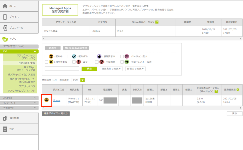 ・ステータスについては、「3.8.3. デバイスへの配布状態を確認する」を参照してください。