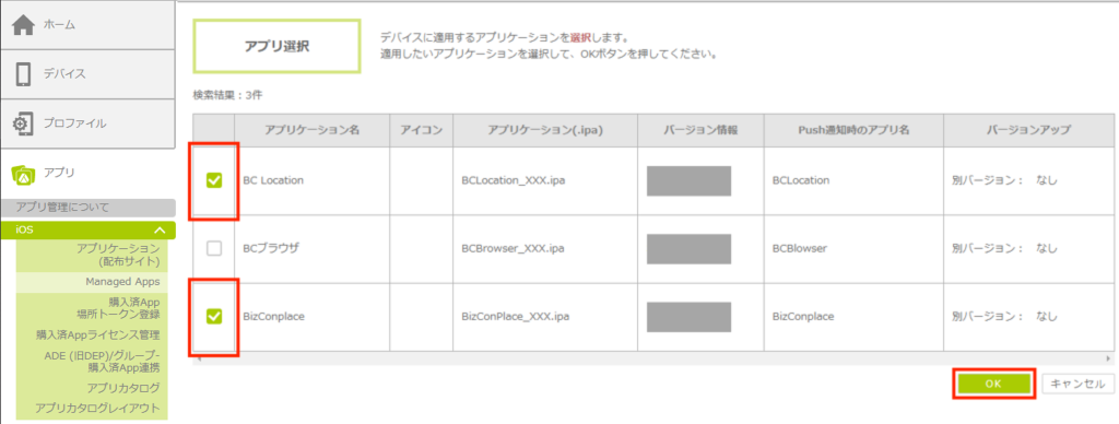 | デバイス登録時アプリ配信 |