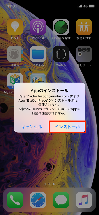 1.デバイスに表示されるインストール通知で、「インストール」をタップします。