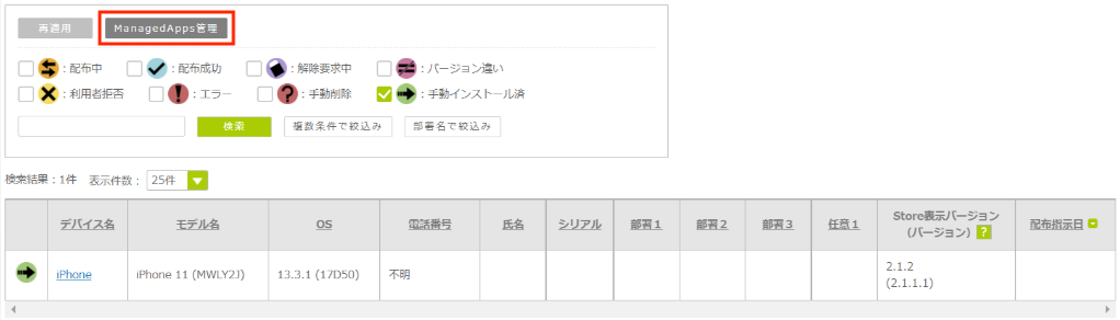 「Managed Apps一覧」画面が表示されます。