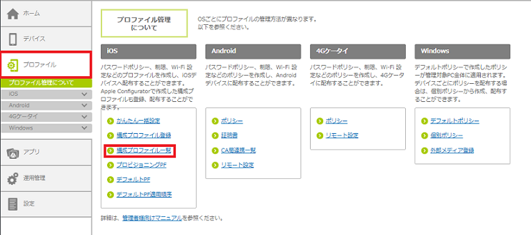 ここでは、プロビジョニングプロファイルを登録してデバイスに配信する方法を説明します。