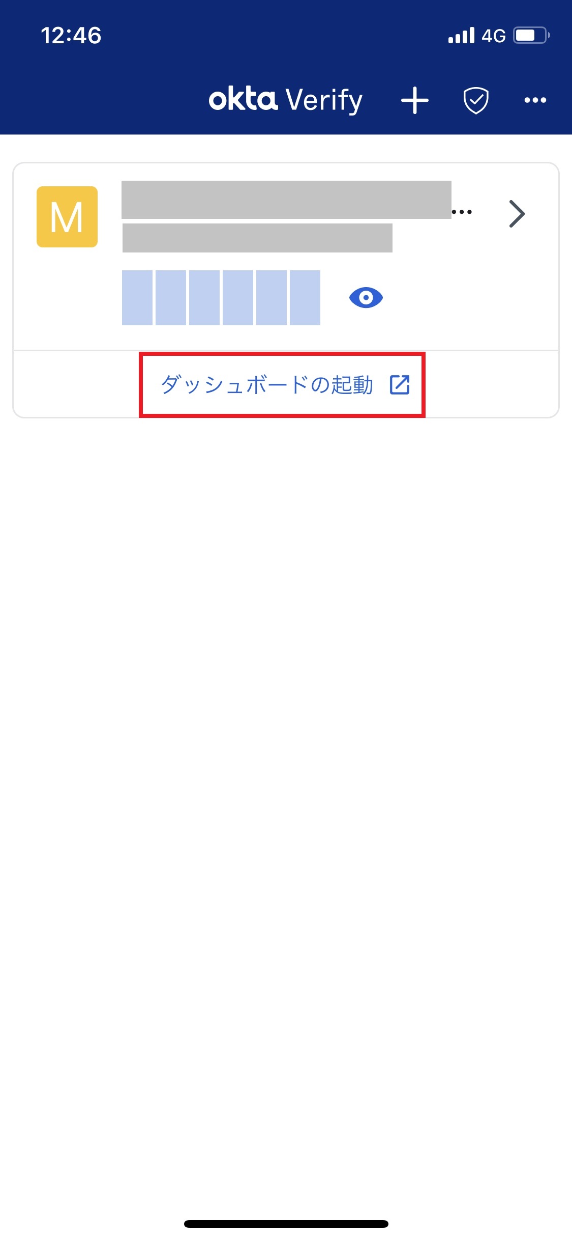 1.「Okta Verify」アプリを起動し、「ダッシュボードの起動」をタップします。