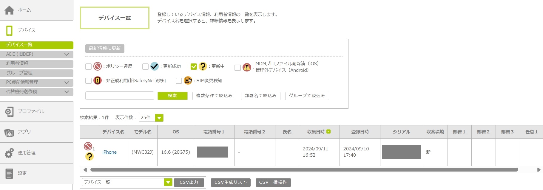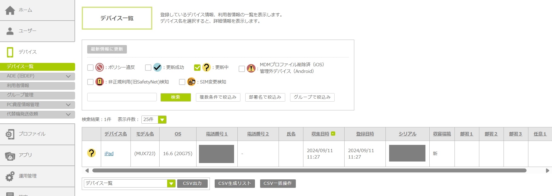 1. 「情報更新待ちデバイス」の合計デバイス数をクリックします。