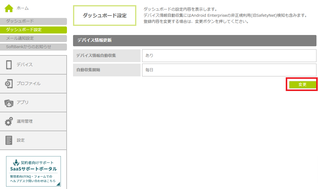 「ダッシュボード設定変更」画面が表示されます。
