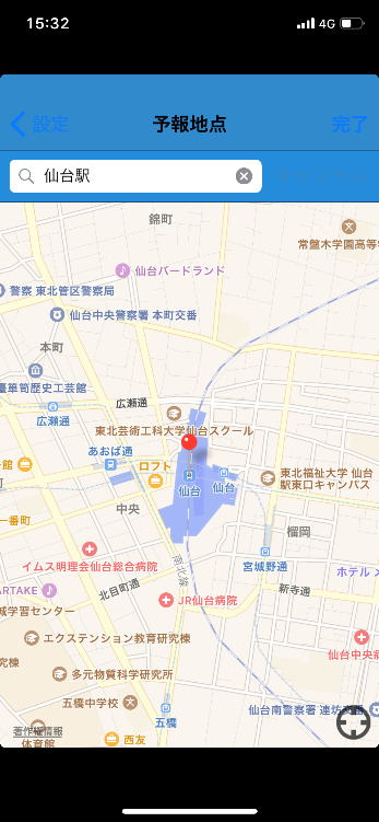 予報地点の住所にピンの位置が反映されます。