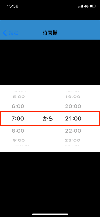5. 「時間帯」をタップし、通知する時間帯を選択します。