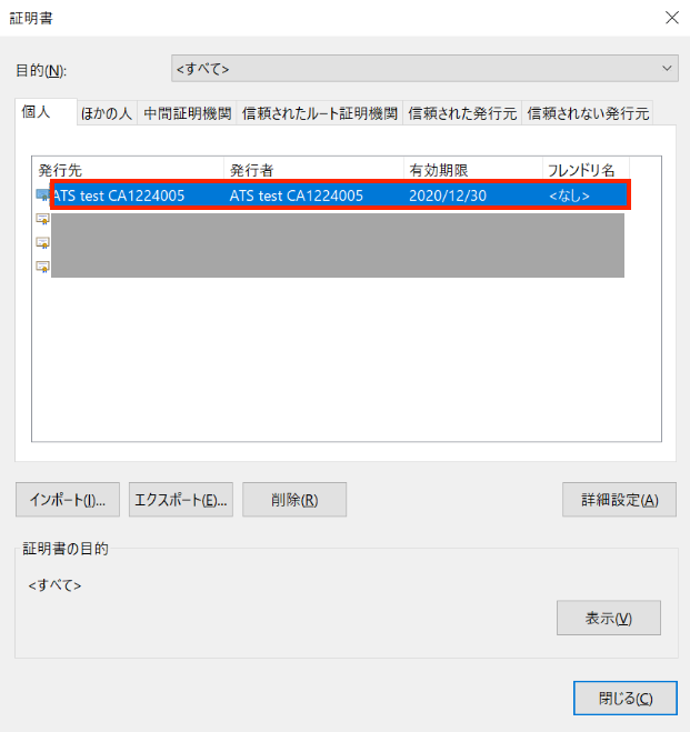 配布された証明書が表示されます。