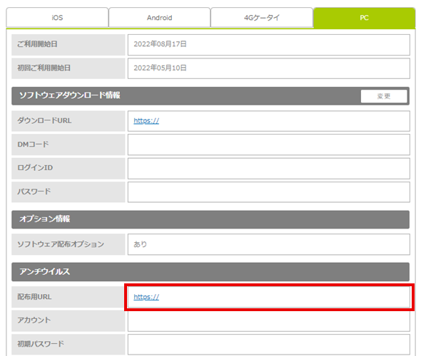 ウイルス対策ソフトの配布URLは、管理サイトの「設定」-「Windows」タブ-「アンチウイルス」に記載されています。