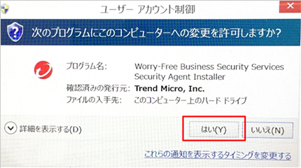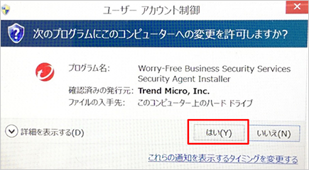 4. 以下の画面が表示されたら、「はい」ボタンをクリックします。