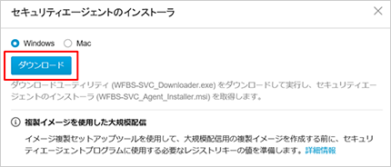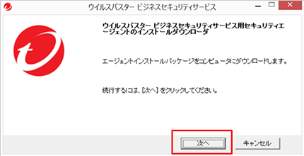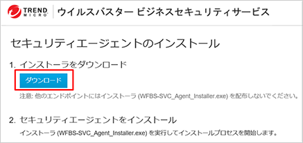 1. ウイルス対策ソフトのインストール画面を表示し、「インストーラのダウンロード」ボタンをクリックします。