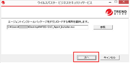 9. 管理対象デバイスで、管理者デバイスから配布したウイルス対策ソフトのインストールパッケージを起動します。