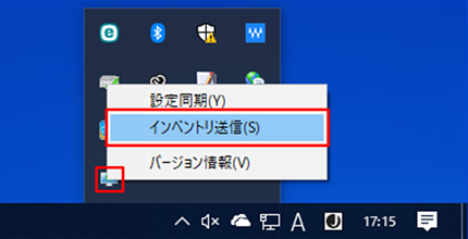 1. 画面右下のISMCクライアントのアイコンを右クリックし、「インベントリ送信」をクリックします。