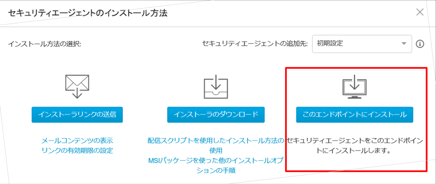 1. ウイルス対策ソフトのインストール画面を表示し、「このエンドポイントへのインストール」ボタンをクリックします。