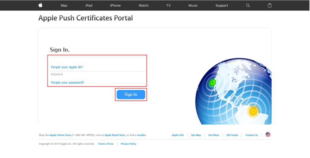 Apple Push Certificates PortalのWebサイトが表示されます。