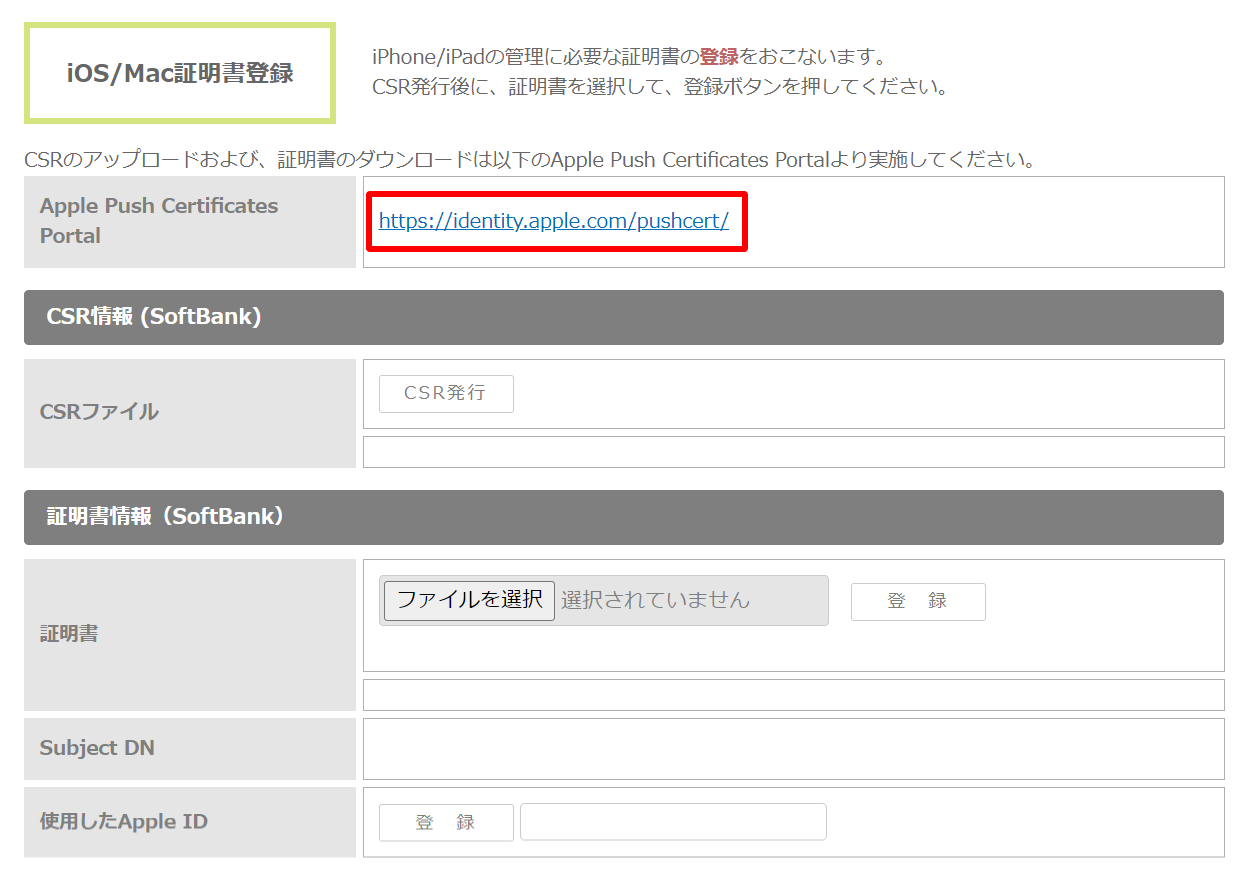 MDM証明書の作成について ・MDM証明書の作成方法は、予告なくApple社により変更される場合があります。 ・MDM証明書の作成は、Macの場合はSafari、Windowsの場合はGoogle Chromeで正常に動作することを確認済みです。 |