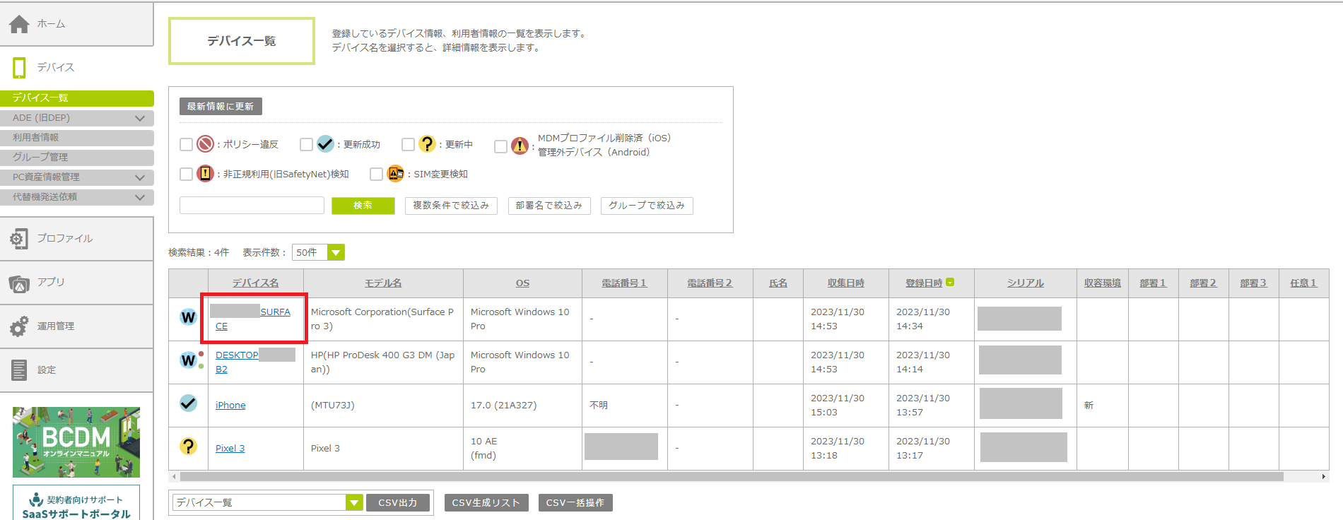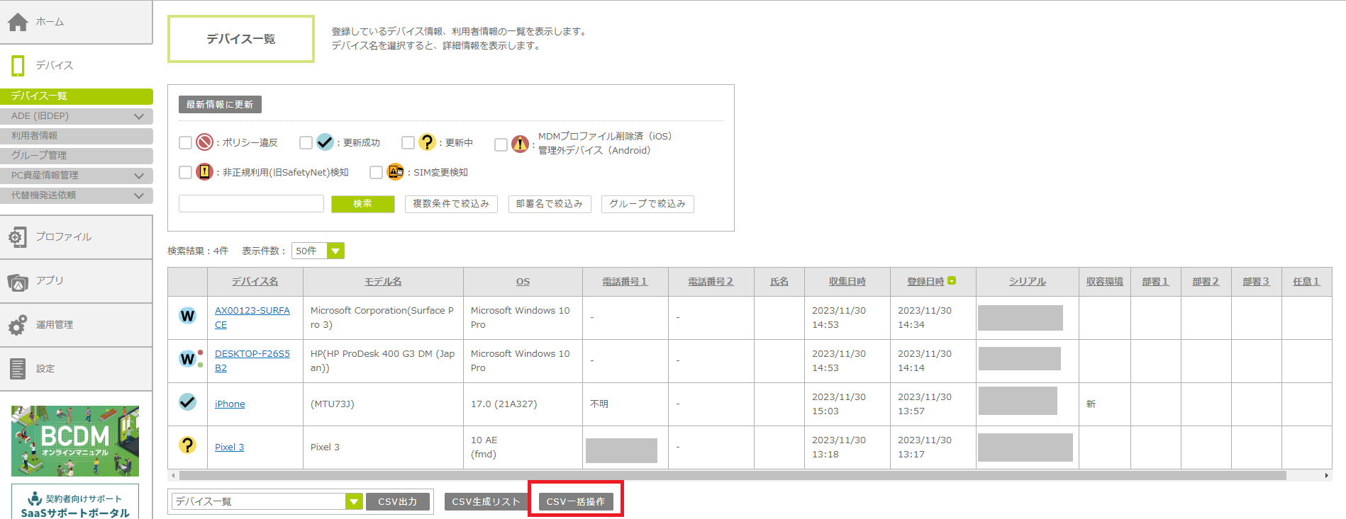 デバイスをCSVで一括指定してデバイス登録を削除する