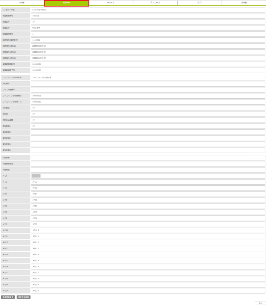 | 機器名称 | 資産の機器名称が表示されます。 |