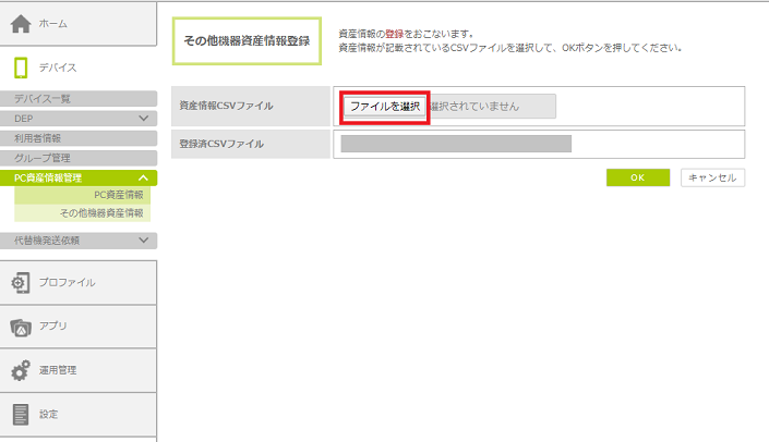 - CSVファイルを作成し、一括でその他機器の資産情報を登録します。