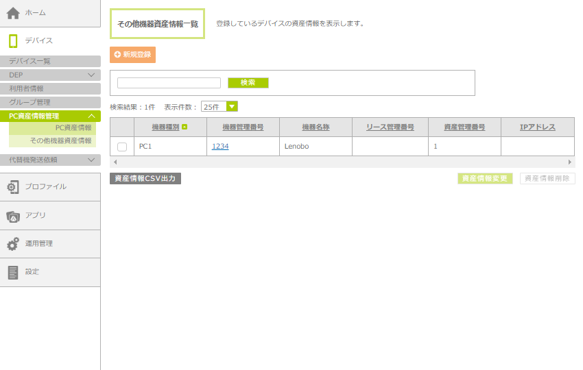 登録したその他機器の資産情報一覧を表示する方法を説明します。