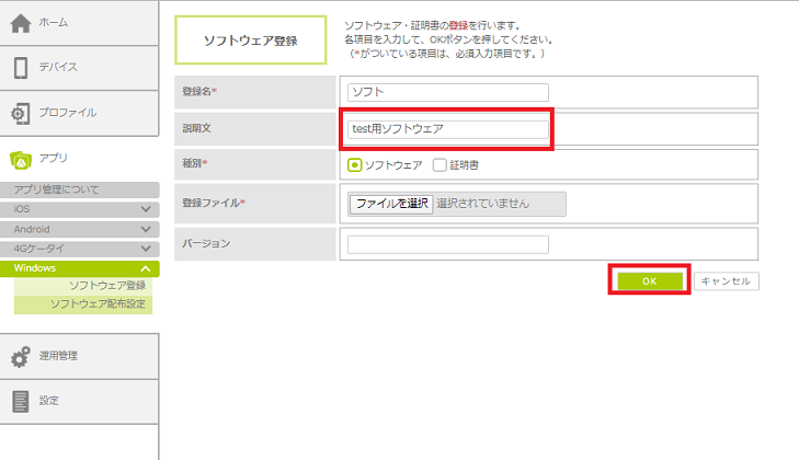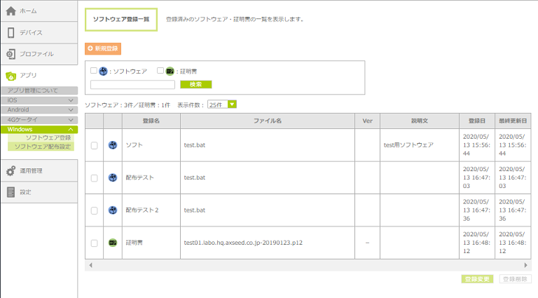 ここでは、ファイル指定でソフトウェアなどを配布する場合に、ソフトウェアや証明書を管理サイトに登録する方法や、確認・変更する方法を説明します。