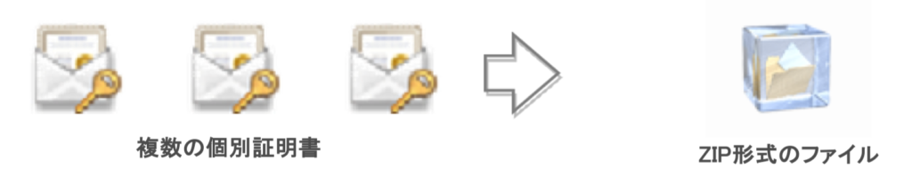複数の個別証明書を1つのZIPファイルにまとめて圧縮します。パスワードは設定しないでください。