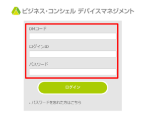 2.「DMコード」、「ログインID」、「パスワード」を入力します。