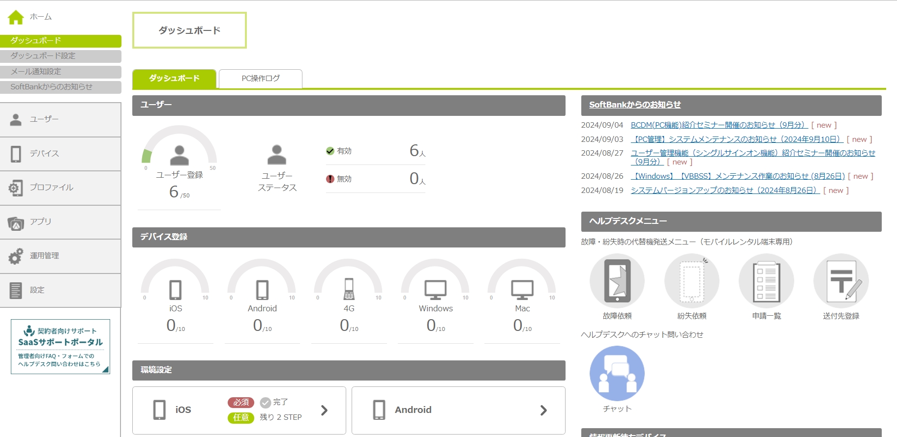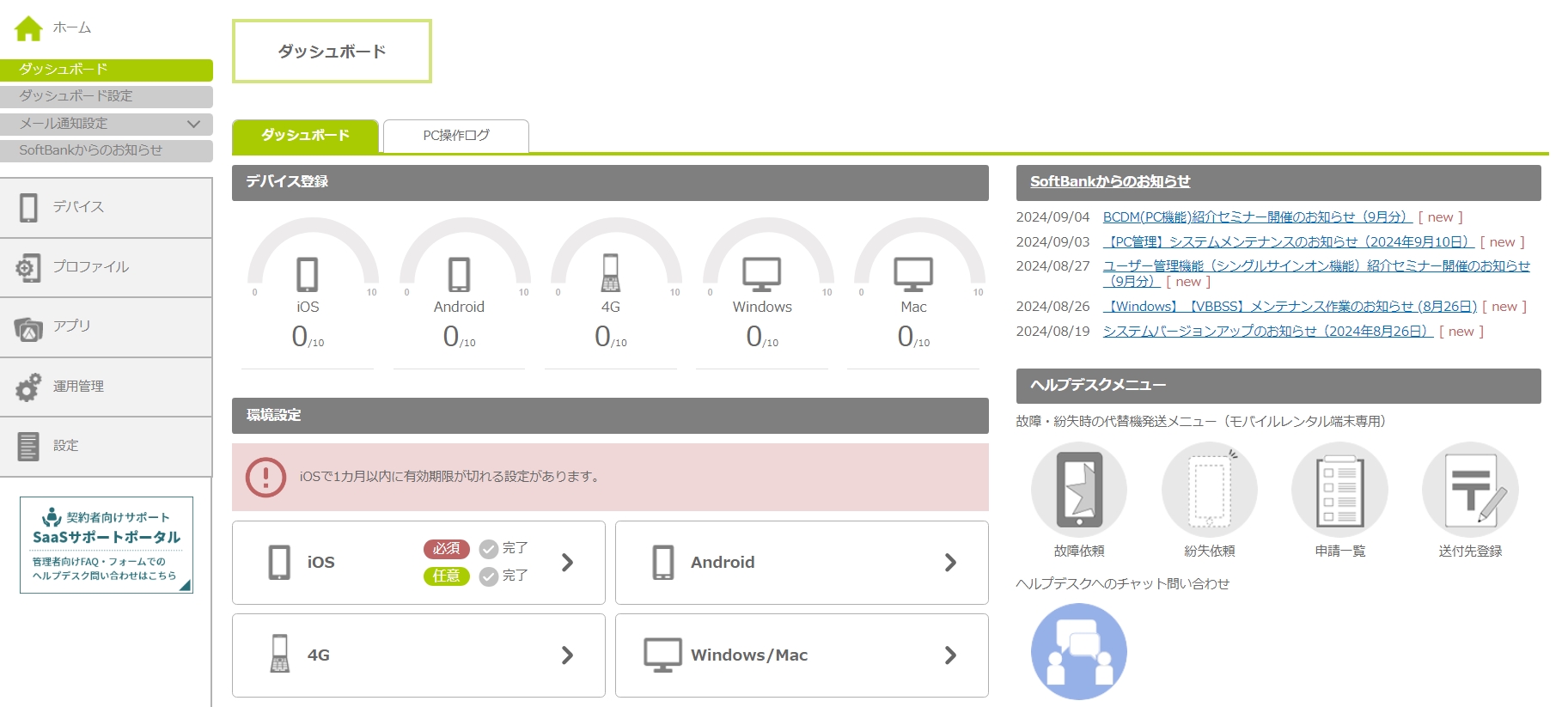 初回ログイン後、契約内容と、管理サイトに記載されている契約内容が同一であることを確認してください。契約内容が異なる場合は、ヘルプデスクまで連絡してください。