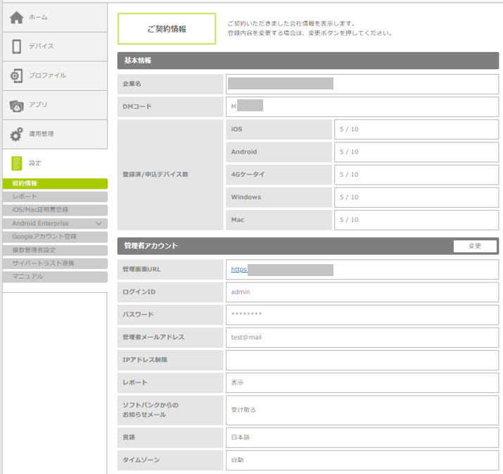 契約しているデバイスに応じて、iOSデバイスの設定情報が表示されます。
