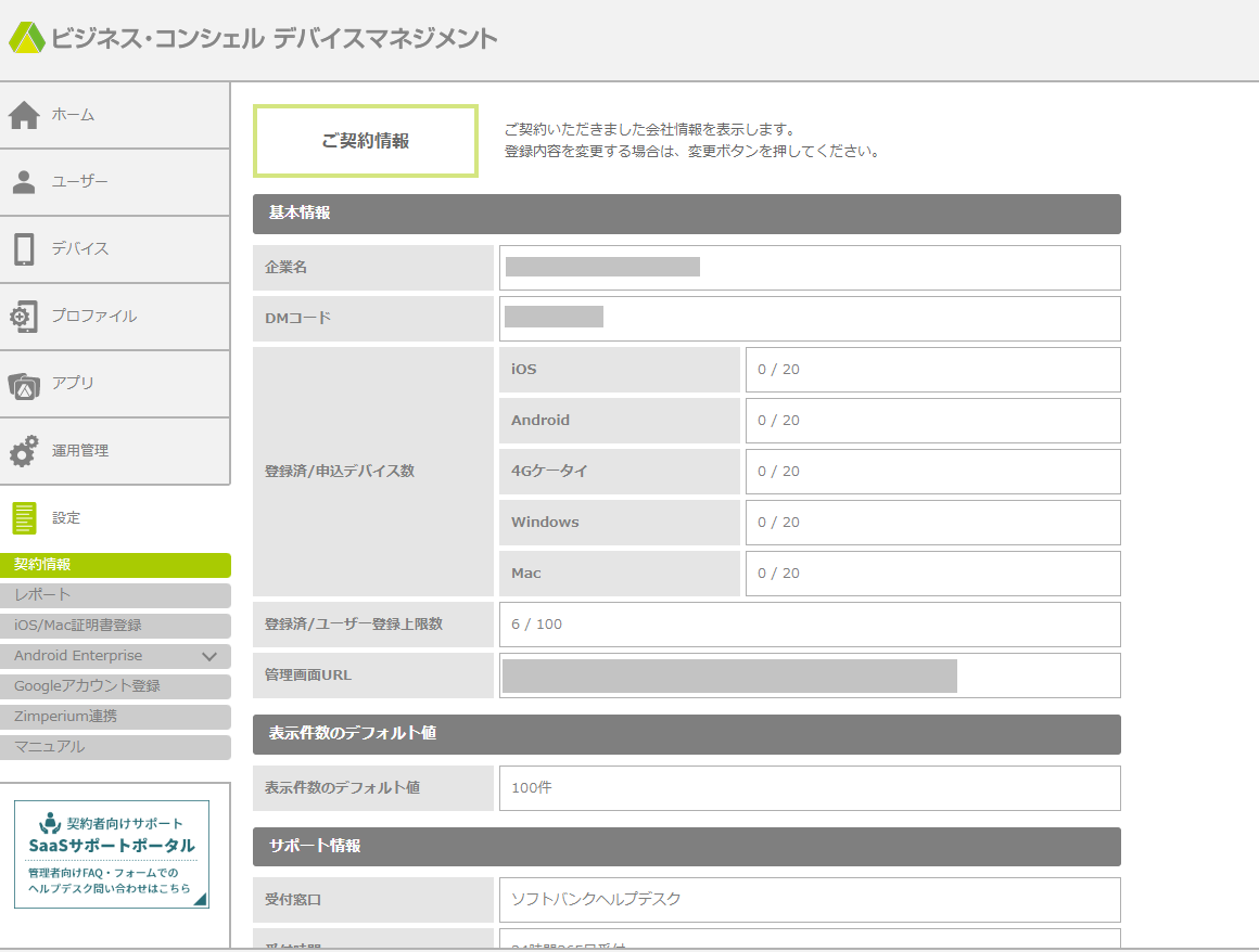 ビジネス・コンシェル デバイスマネジメントのFAQ、ヘルプデスクへの問い合わせフォーム、リリースノート等利用するサイトです。
