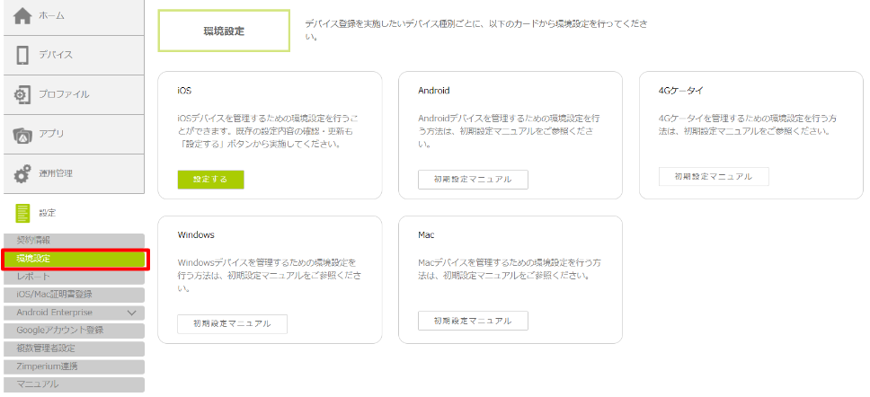 デバイスを登録するために必要な、MDM証明書に関する設定を行うことが可能です。