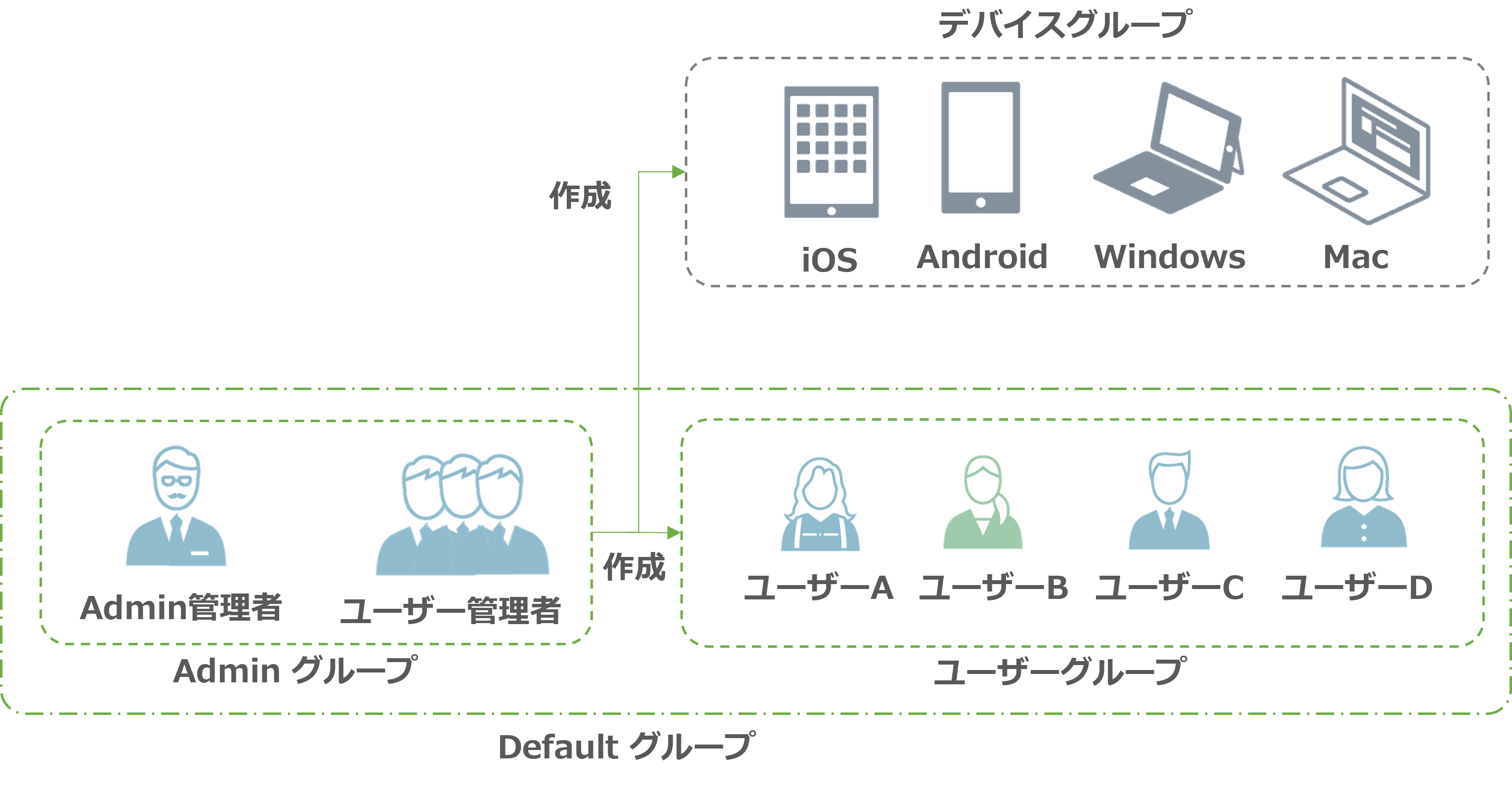作成することのできるユーザーグループ