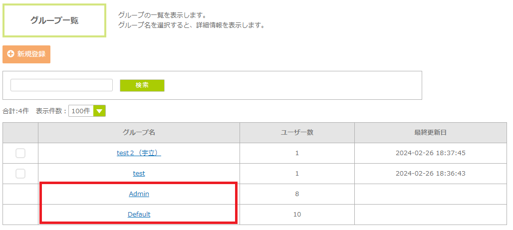 ・「Admin」グループと「Default」グループは、グループ名の変更ができません。