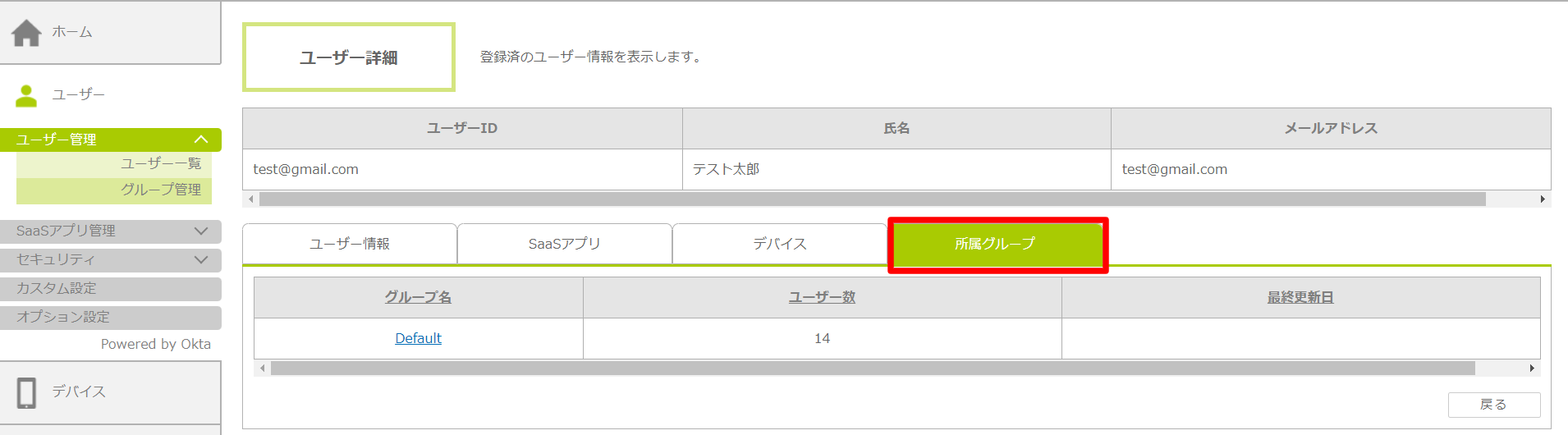 | 更新日時 | ユーザー情報が更新された最終日時を表示します。 |