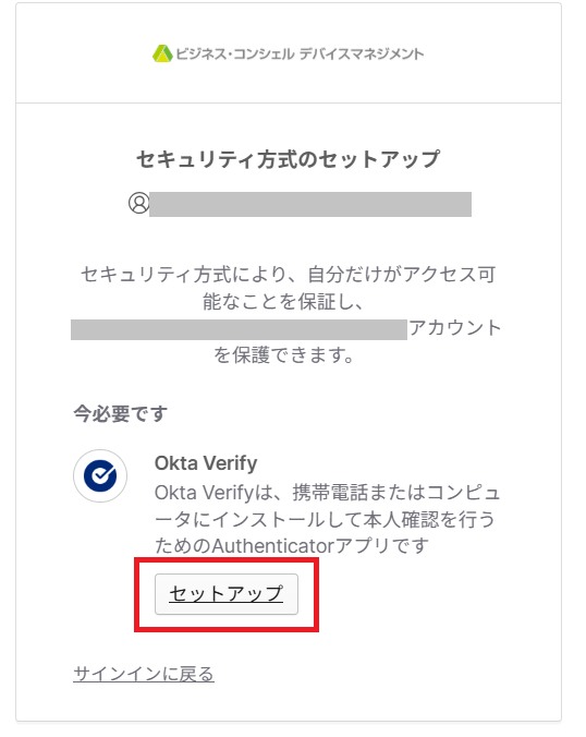 「Okta Verify」アプリのセットアップ