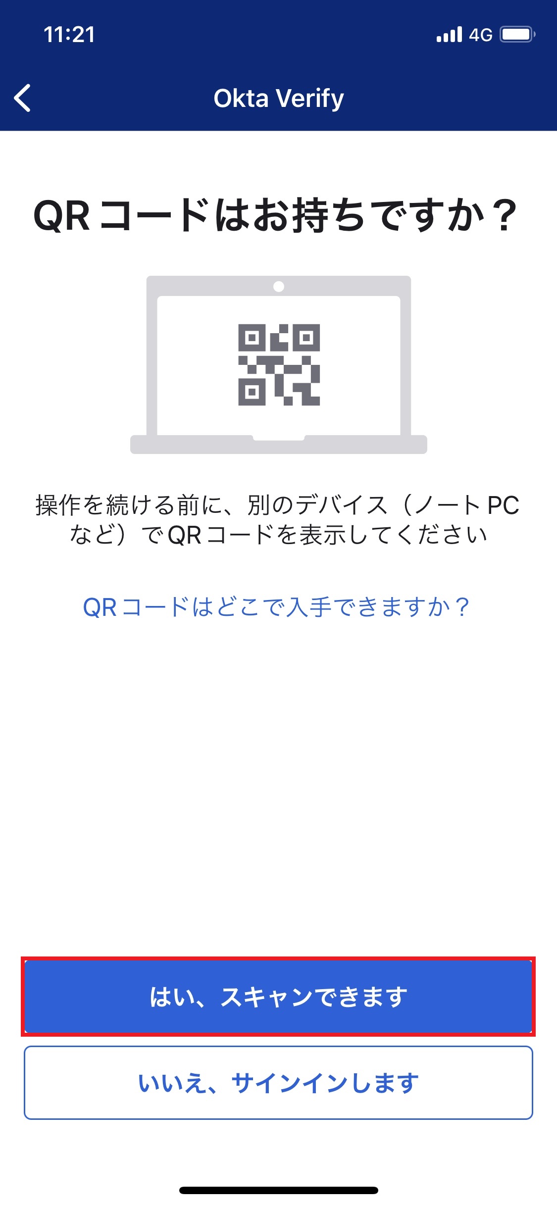 13.「QRコードをお持ちですか?」画面の「はい、スキャンできます」をタップします。